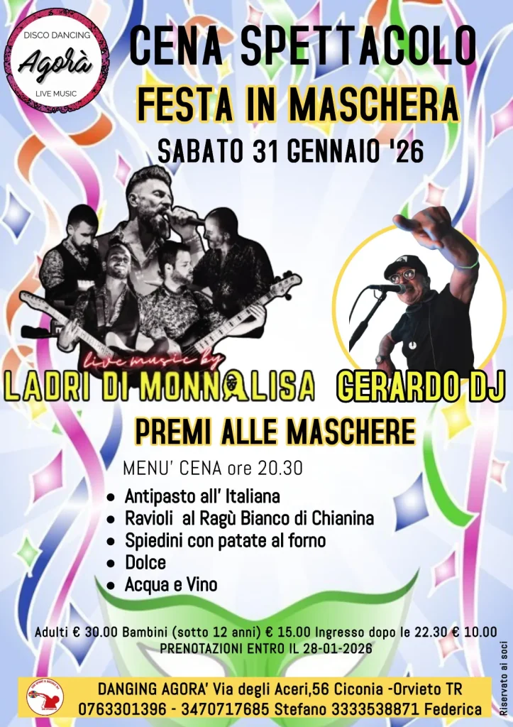 Cena spettacolo e Festa in Maschera con “I Ladri di Monnalisa” e Gerardo Dj